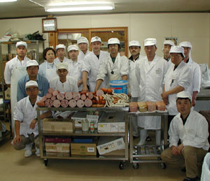 1958年3月12日生まれの犬年のうお座。 出生地は大阪、阿倍野の赤十字病院。 育っ たのは兵庫県の尼崎市で、18歳で県立尼崎北高校を卒業後、北海道で酪農家に成 る事に憧れ一浪の末、北海道江別市の酪農学園大学に入学。 しかし、父親の商売 にかげりが見え始め結局、北海道で過ごすバラ色の学園生活の夢は一転して、奨学 金とアルバイト代で過ごす、ストーブさえ買えない、貧乏を絵に描いたような4年 間になってしまいました。 我が酪農学園大学には、2回生の年に夏休みをつぶして、酪農家の家に20日間以上住み込みで委託実習に入らなければ、進級させてもらえないという非常にユニークな必修科目がありました。 そして2回生の夏休み、高 さ33mのサイロに登っても見える家は3軒というやたら広大な、尚且つ絶対に逃げ 出せない!牧場で過ごした1ヶ月は、甘い学生の夢などアッという間に吹き飛ばし ました。 失意の中迎えた秋、とぼとぼとキャンバスの中を歩いていた時(実際はキャンバ スなど呼べる代物ではなく、当時の酪農学園は、農場と小屋の集合体のようでした 。)目に入ったのが肉製品製造学実習室というやたらボロイ 小屋。(現在はとてもりっぱになってますので誤解のないよう)。 転身の早い私は 、そんな訳で次の瞬間には「そうか!俺は本当はハム屋に成る為にこの大学にきたんだ」と思ってしまったのです。 その後は、大学で2年、静岡で1年半、札幌で5年間ハム作りの辛くて過酷な、思 い出すだけで恐ろしい!? 修行時代を経て昭和63年、この地に歩人を開業した訳です。 ところが・・・十勝岳がすぐに爆発!歩人の前の道は通行止め。 夜中に製造した品物をリックに積め、始発のバスで旭川へ売りに行くという行商で食いつなぎながら通行止め解除を待ち、その後も事故で背骨は折るは、雷は落ちるわで、谷 あり谷ありの我が人生、根っからの楽天家の女房に支えられ現在にいたっております。 よくまぁーここまで生き残ってきたと思います。 写真は、平成13年度まで会長をしていた「北海道食肉加工技術研究会=通称ハム研」で道内のプロのハム屋さんを招いてドイツ人マイスターと行った研修会の一こま 中央でドイツ人と肩を組んでいるのが私です。 共同研究著書::血液タンパク質の食品への利用に関する研究 ★ ★ |